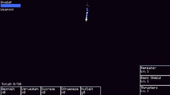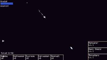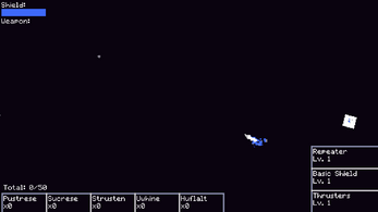 There are 7 unique weapons, 4 different shields, and 3 different thrust modules for a total of 86 possible ship kits!